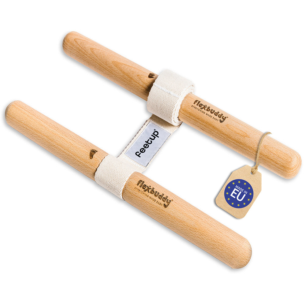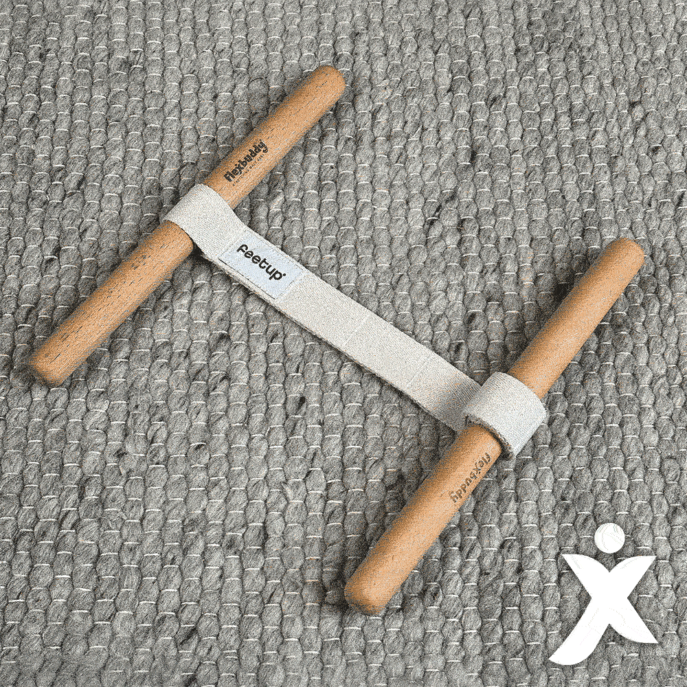 - Simply place one wooden bar onto your feet soles and grab the counterpart with your hands.